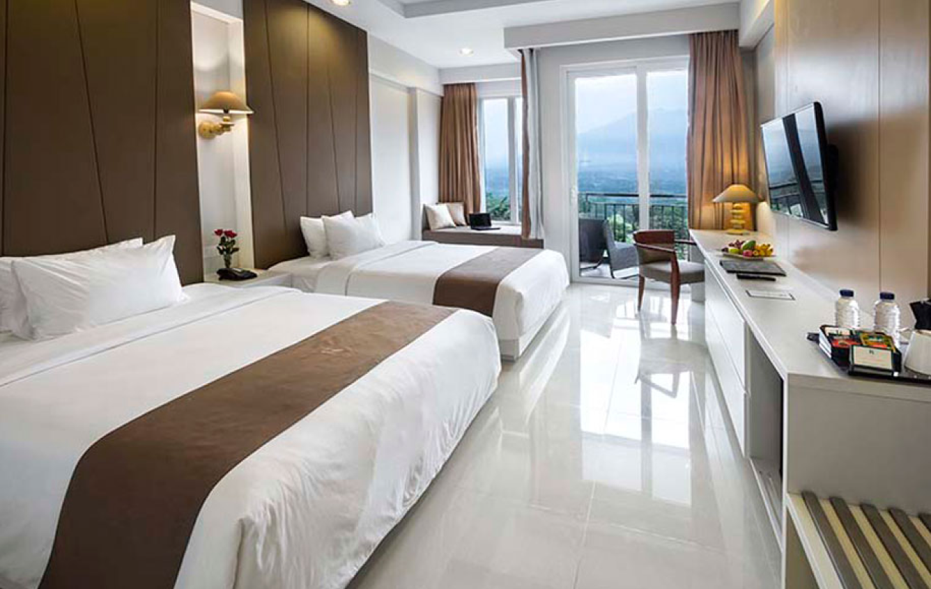 Experience this glorious destination from the comfort of the 46 sqm, housed on the upper level of the main hotel building. Designed to inspire relaxation, the rooms include a balcony offering the most dramatic views over the long lagoon pool, majestic Mt. Salak, and our championship golf course. Super Deluxe Room welcomes guests with all the comforts of a fine room, along with signature R Hotel Rancamaya service and amenities.