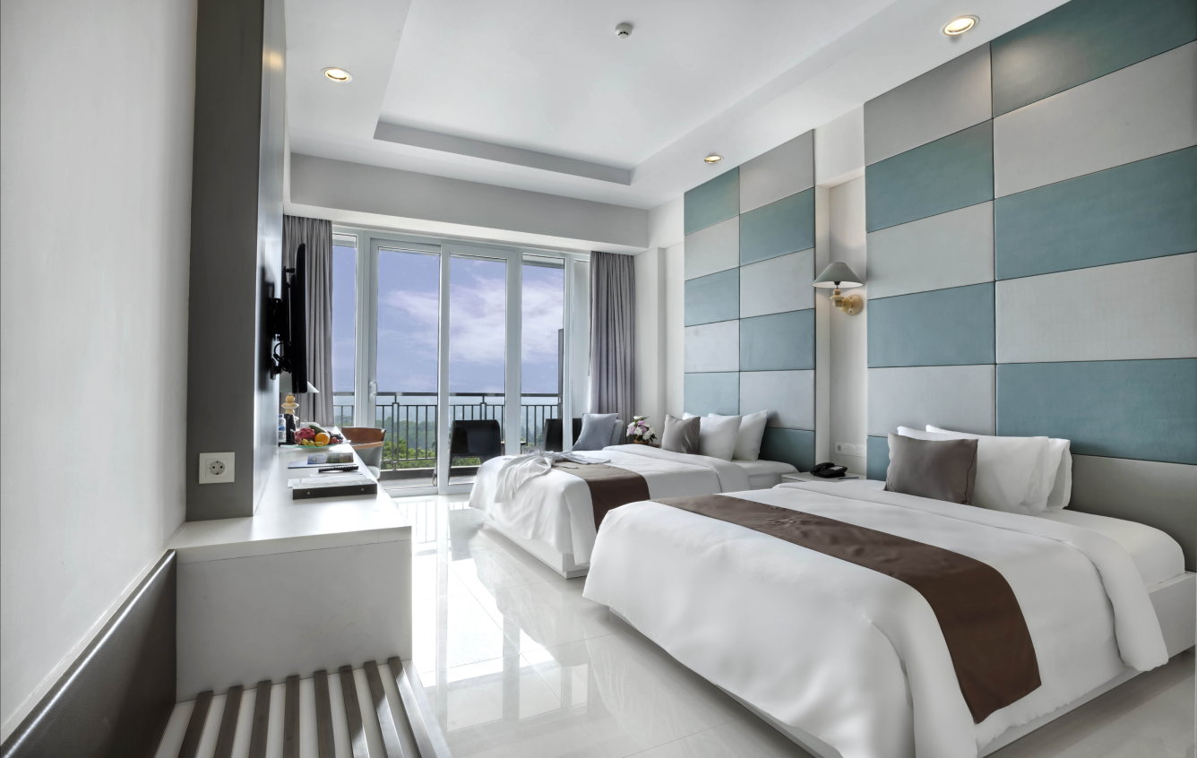 Relax in exquisite, contemporary style 34-sqm room featuring two 160 x 200 queen beds, Superior rooms are invitingly cozy. Sip your morning tea or coffee on the balcony, before stepping under the rain shower to get ready for a day in paradise. Come back for an afternoon snooze, or laze in bed and watch a movie.