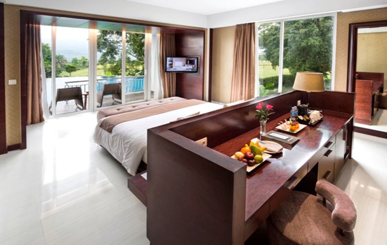 The extra space of our Grand Suites gives you even more room to relax and enjoy mount-front life to the full. Perfect for families and friends, you'll find all the essential comforts you need, whatever you're in the mood for. Watch the sweeping views across an expanse beautifully manicured golf course towards mystical Mt. Salak on the distant horizon as you chill out on the balcony.